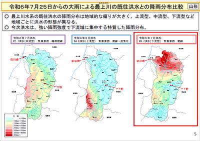 上の図の左側は令和2年に最上川中流域で大雨が降った時。
