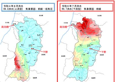 上の図の真ん中は令和4年の前線性降雨。
