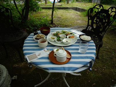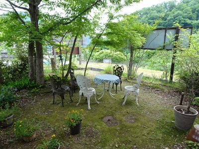 どこに座ろうかなと思っていたらお庭の素敵な席が空いていたので