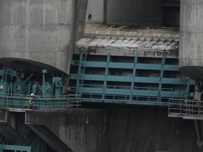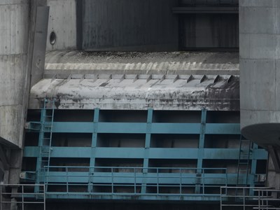 洪水期にクレストゲートが引き上げられて全閉になっているときは