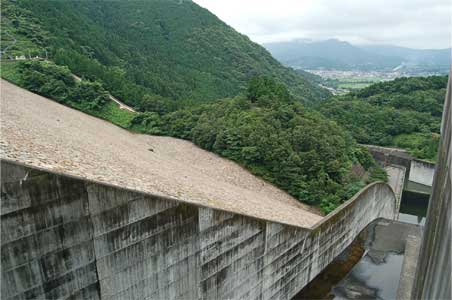 上流側も洪水吐部分以外はロックフィルなんですね。