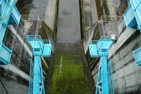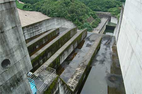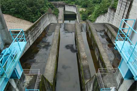 水路の壁の幅も常用洪水吐と非常用洪水吐で違っていますね。