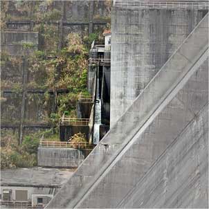 天端中程を過ぎて左岸に近づくに連れ、耳に届くようになっていた水の音。