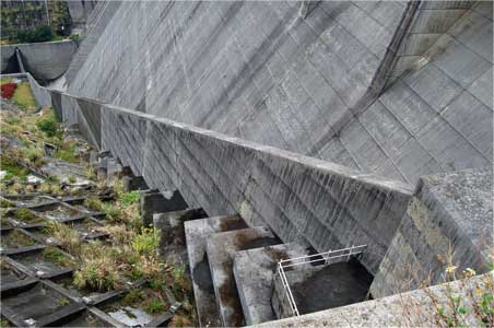 堤体の横から突如現れるお水。