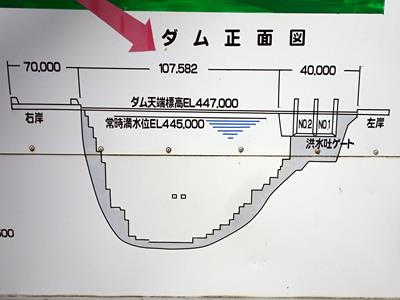 こちらがダムの正面・・ええと、下流面だから背面図。