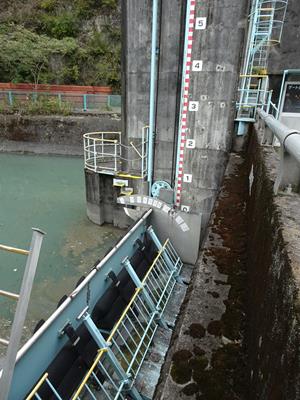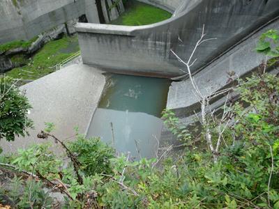 雨畑ダムも堆砂が進行していて放流のたびに、シルト分の多い水飛沫が