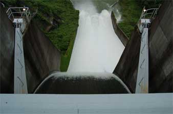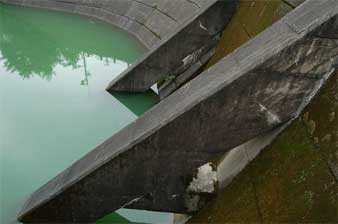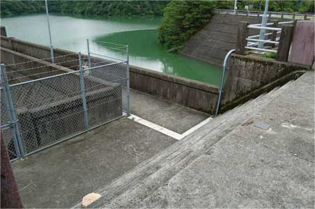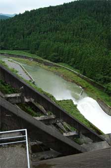 洪水吐水路の傾斜が下の方が緩やかにされてのばされているのも納得できます。