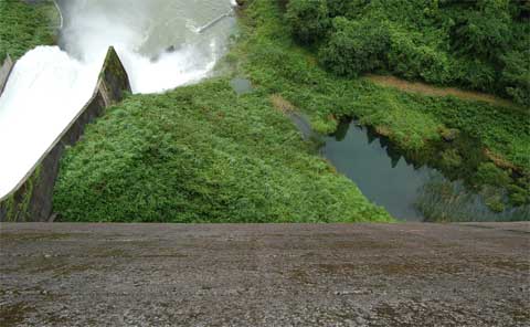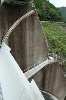 堤体下流面の角度の変化で堤体の下まで見ることができません。