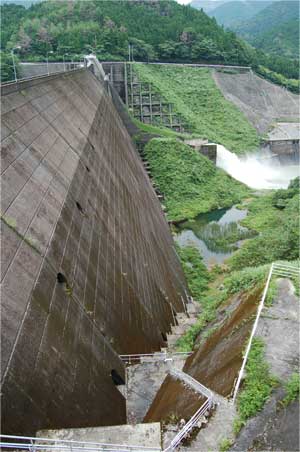 四国電力で一番大きなダム湖を持つ中空重力式の堤体・穴内川ダム。
