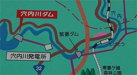 点検作業に来ておられた四電の方からパンフレット入手先として教えていただいた繁藤ダム(堰堤)に行きました