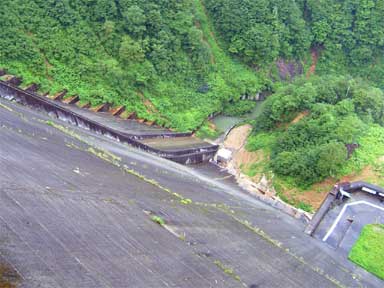 天端から又、覗いた洪水吐き部分。