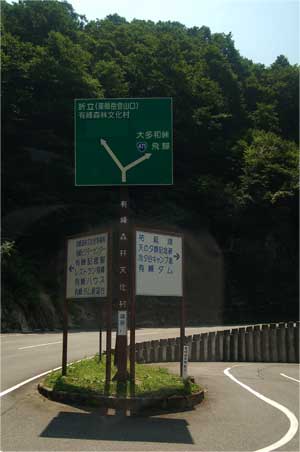 有峰記念館から下ってきてこの交差点でくるっとまわって堤体へ。