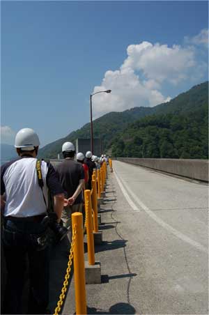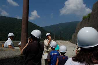 有峰ダムの説明を常願寺電力部の方がしてくださっています。