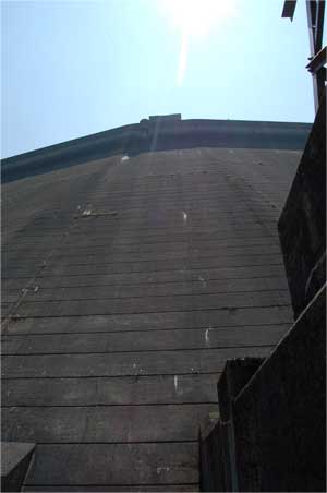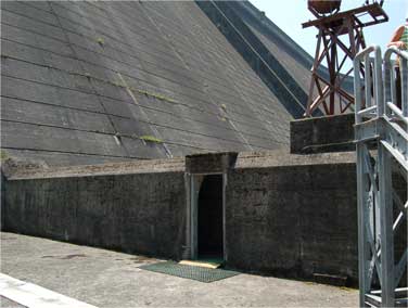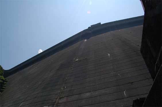 有峰ダム堤体正面図。