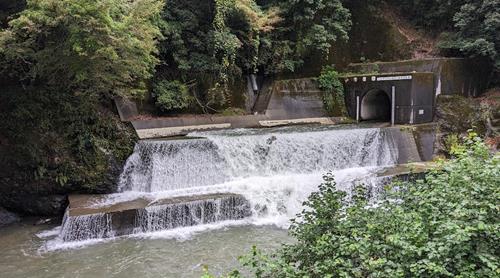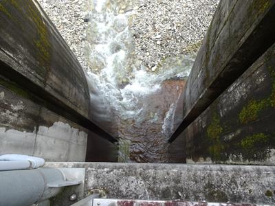 今は稼働していないので貯砂堰だけをパスするルートに水が流れていきます。
