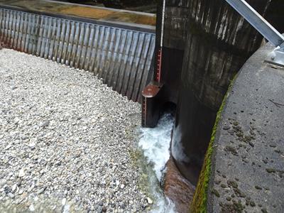 流れてきた水はそのまま貯砂堰をパスして貯水池に流れ込むルートに。