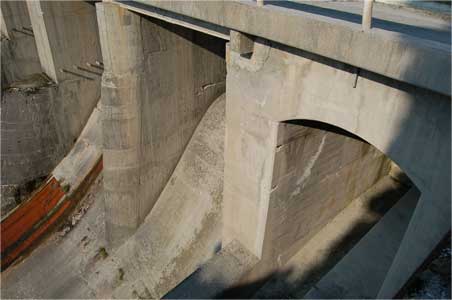 このコンクリートは放流した時の水流を安定させるための導流壁との事でした。