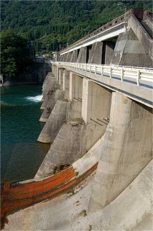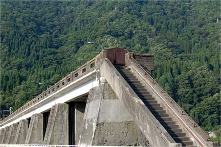 戦時中に作られ、今も現役で頑張る浅井田ダム。