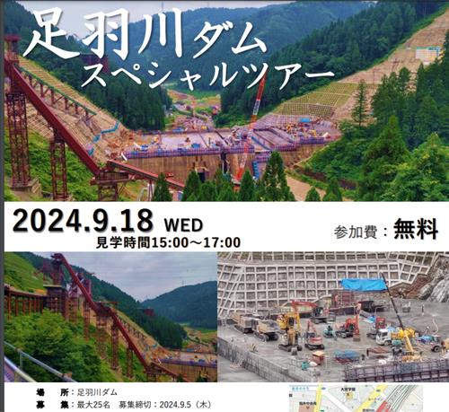 ダム工学会による足羽川ダムスペシャルツアーが開催されることになりました。