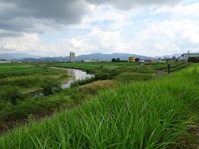 広い川幅の足羽川です。