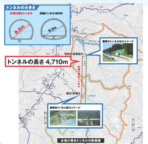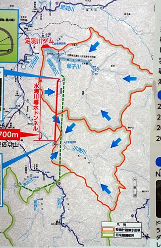 赤谷川、、割谷川、足羽川の水を集める足羽川導水トンネルは