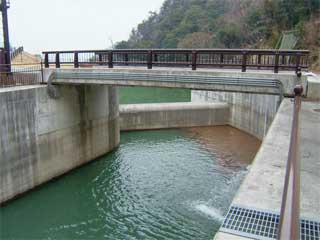 減勢工にしゅぱぱぱと流れている河川維持用水らしきもの。 上屋から見るに発電はしていないようです。