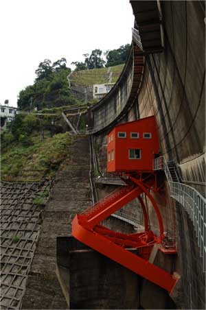 アーチ式ダムの堤体から生えるゲート室。