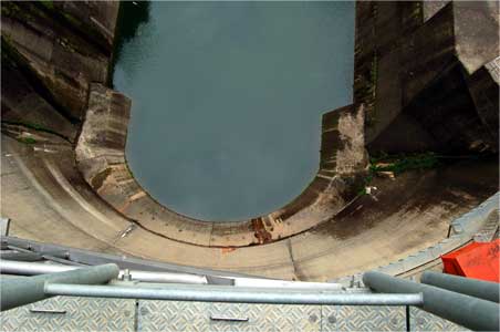 立派な副ダムは背が高いのでスキージャンプから放流した時に