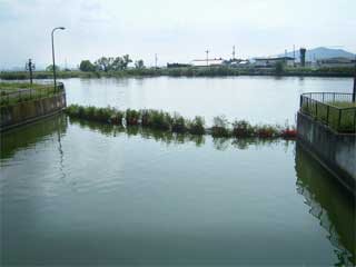 河口堰の横にあるのが排水機(ポンプ)場です。