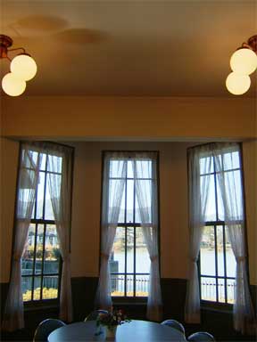 西側の窓の外には瀬田川洗堰。