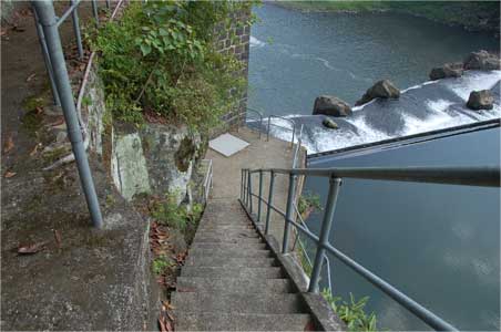 堰堤横まで続く階段にも下ろしていただきました。