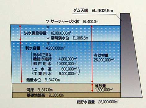 現在の水位は常時満水位+α、つまりEL385.5m+αです。