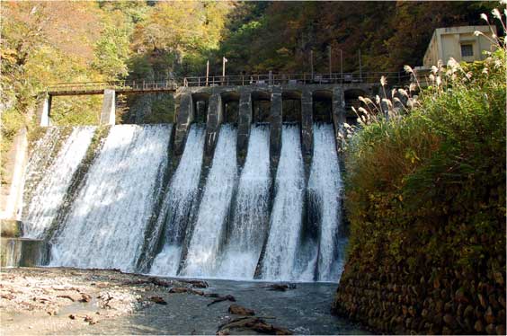 水量はそこそこありますが、川幅もこの距離では堤体と同じくらいあり