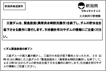 新潟県 土木部河川管理課 令和4年8月3日からの大雨について