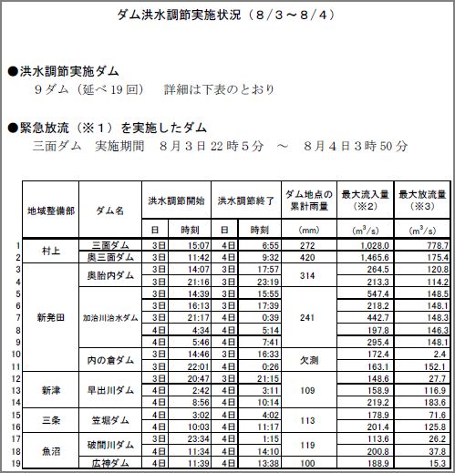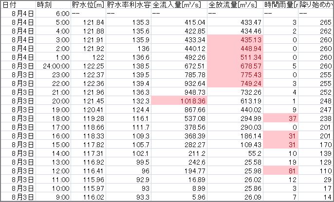 8月4日の03:50に異常洪水時防災操作は終了しました。