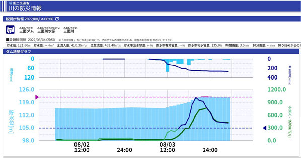 三面ダムは異常洪水時防災操作を6時間近く実施しましたが