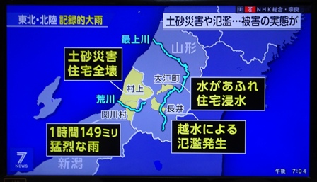 最上川も被害甚大でしたが県境を越えて日本海側、新潟県では