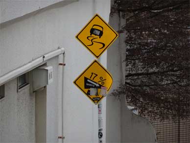 ずっと尾根なので横の道路の勾配がすごい。