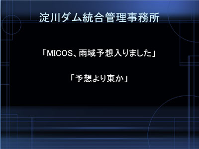 各ダム管理所でこのサービスを受けて詳細な気象情報が見られるようになってるねん」