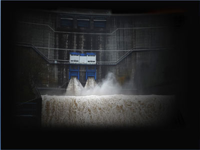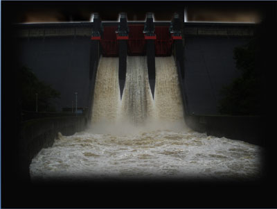 「貸してもらったダム写真は皆ホントは台風が行き過ぎた後の