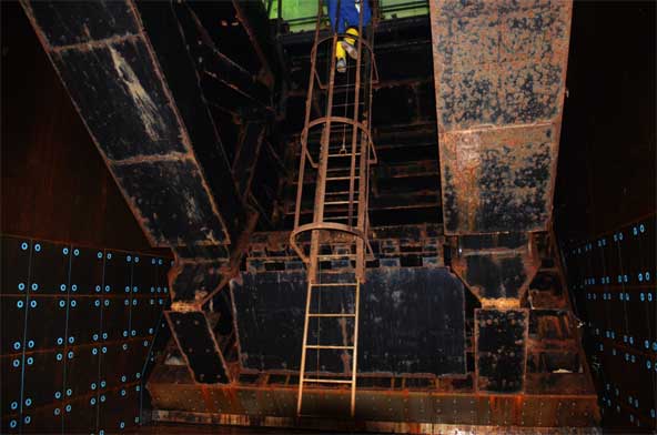 次に降りる梯子はラジアルゲートの扉体の梯子。