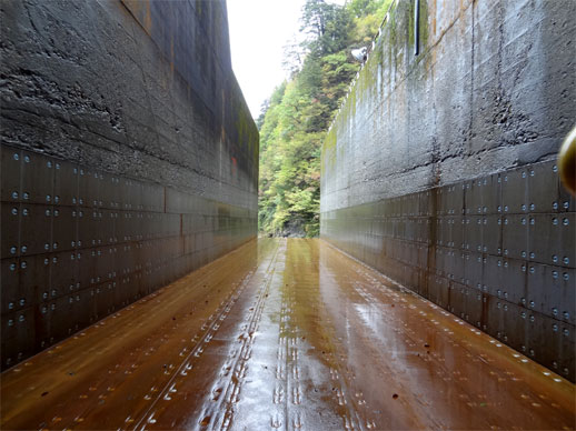 出し平ダムの上流に位置する小屋平ダムの排砂路で