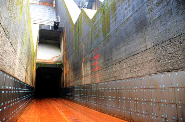 ライニング材は排砂路の壁部分は13mm、床部分は32mmの鋼鉄製。