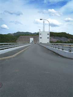 天端中央付近から右岸のアバットメント上にクレーン橋脚跡を見られます。