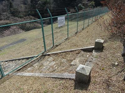 堤体に設けられた石の階段もフェンスでしっかり仕切られて通れなくなっていました。