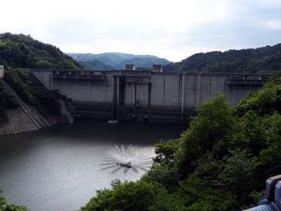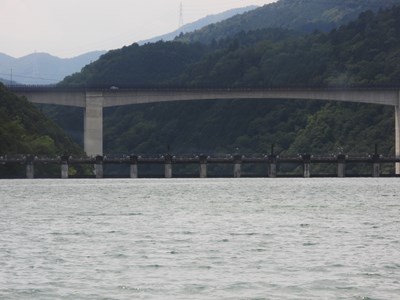 小里川ダムの直上流にある道の駅に移動する途中の橋から見える堤体です。