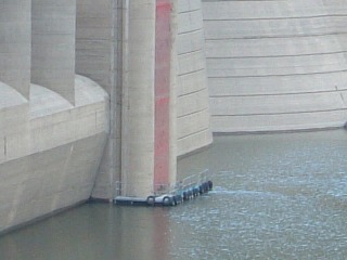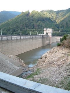 管理所前のパーキングに入るとダム湖側の堤体がよく見えました。