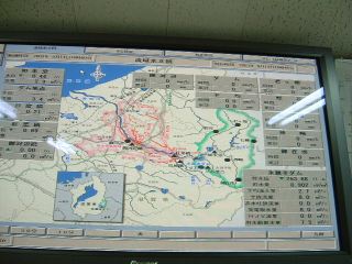 職員の方がPCを操作すると永源寺ダムの洪水調節効果や集水域が