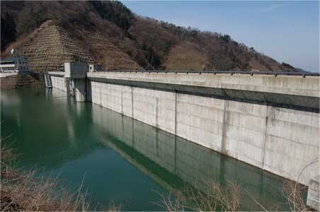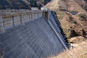 右岸から見るとこんな感じ。シンプルな堤体ですね。
