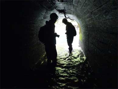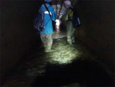 2km近く歩いて最初の水路トンネルの開口部が目視できるようになると